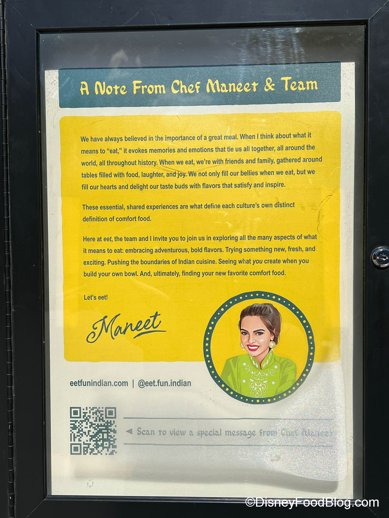 There’s even a little note from Maneet Chauhan at the new Disney Springs location.