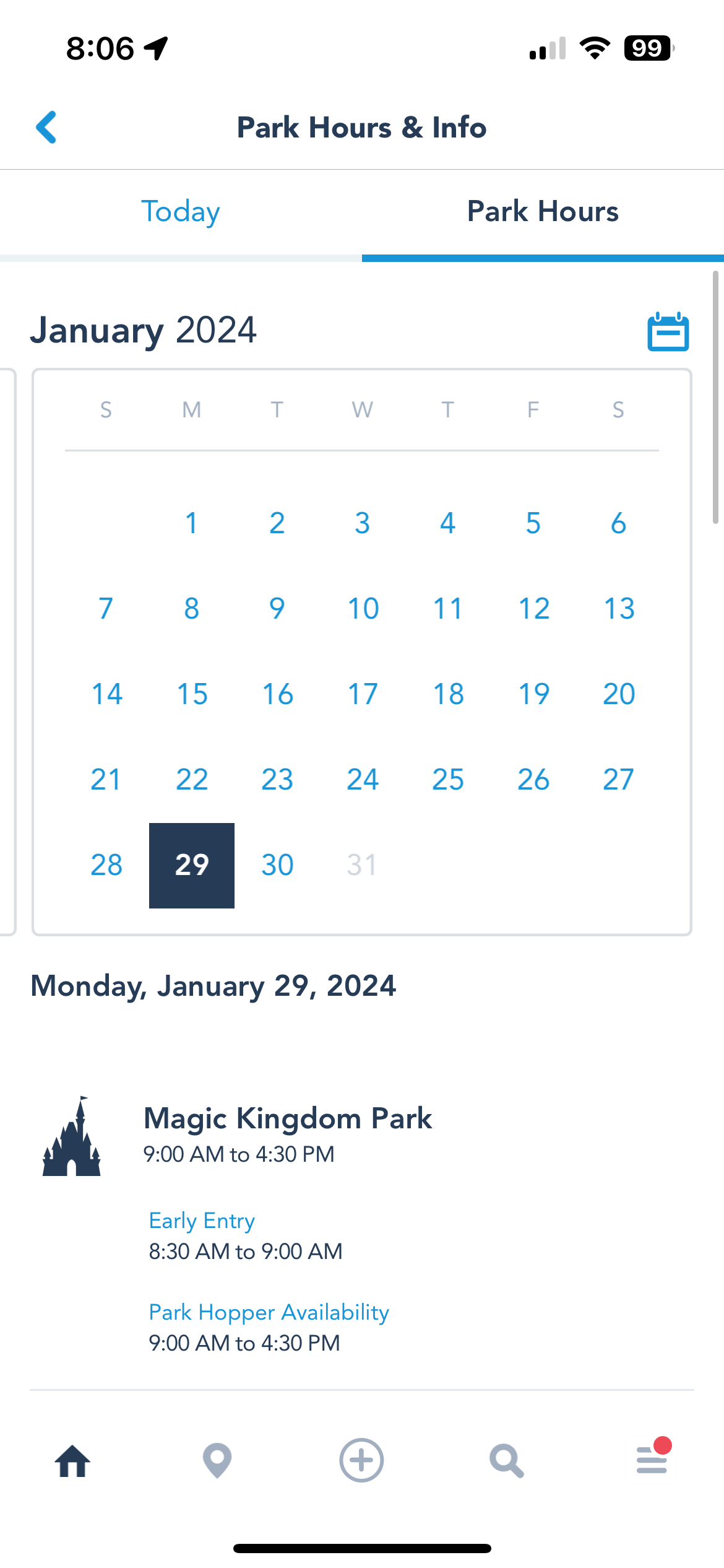 But what’s happening on January 29th that you need to know about? On January 29th, Magic Kingdom will be closing early! On that day Magic Kingdom will be closing at 4:30PM. That will be an early day in the park and you may want to park hop somewhere else if you start in Magic Kingdom.