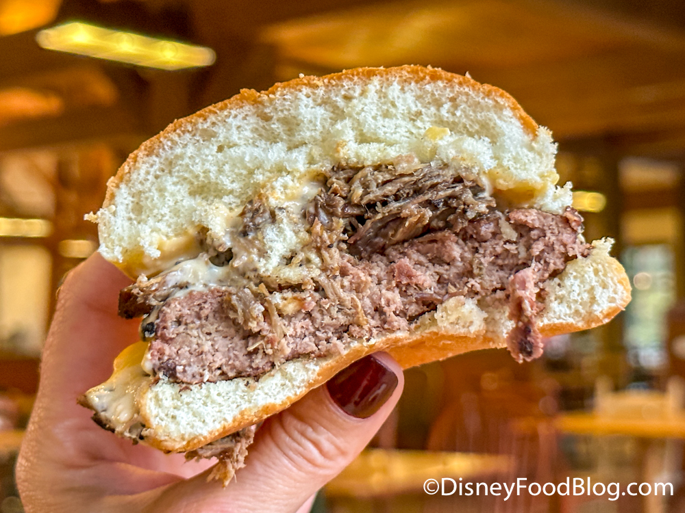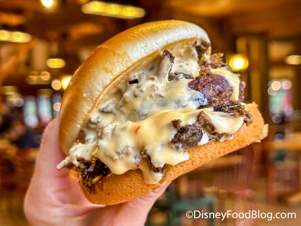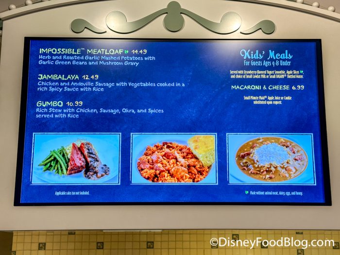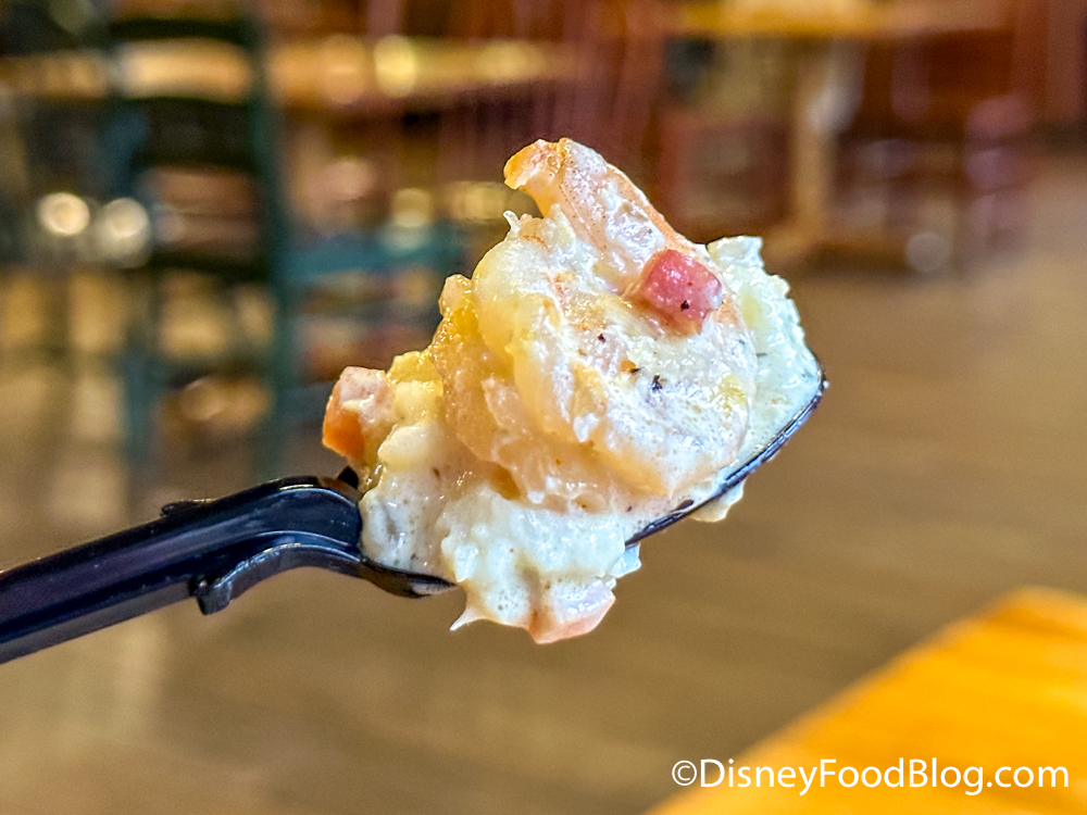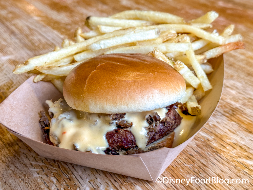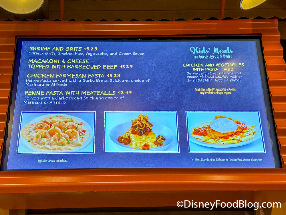 This window also serves options like Shrimp and Grits and Chicken Parmesan Pasta. There’s also a Macaroni & Cheese with Barbecued Beef that has made its way to a few of the food courts on property — we tried it at Disney’s All-Star Sports Resort in June.