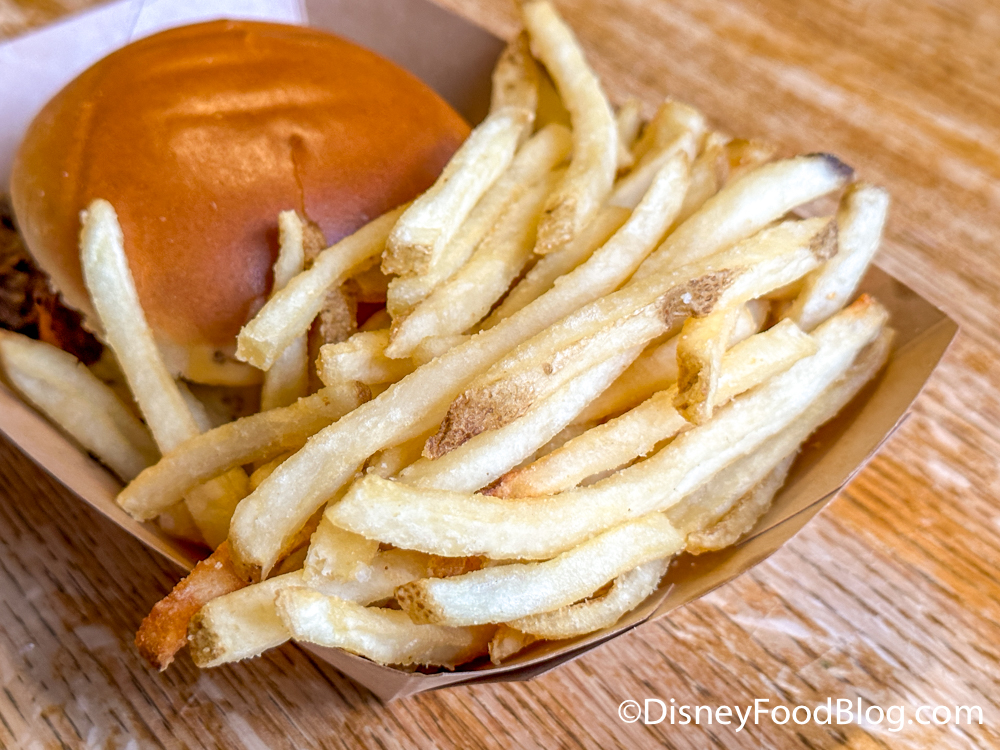 Overall this was a bit underwhelming because of the burger, unfortunately. If it weren’t for the mediocre patty this would probably be amazing! The fries were good though — your typical hot and fresh Disney World french fries.