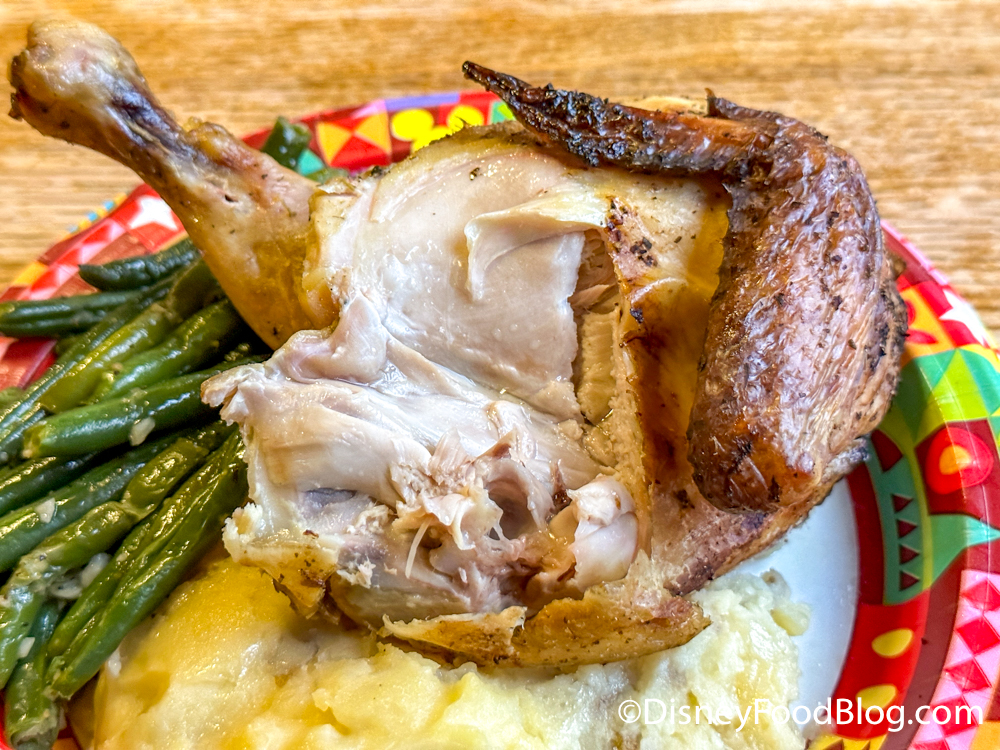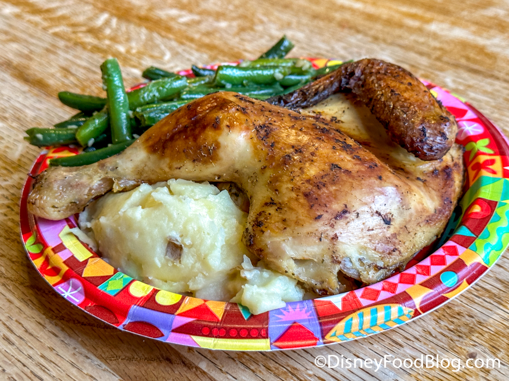 I ordered the Mojo-roasted Chicken, which is part of a Create-Your-Own-Entree, with Yukon Gold Mashed Potatoes and Garlic Green Beans.