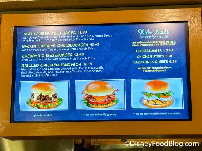 There is also a Bacon Cheddar Cheeseburger, Grilled Chicken Sandwich, and Bayou Amber Ale Burger at this window, as well as a few kids’ meals.