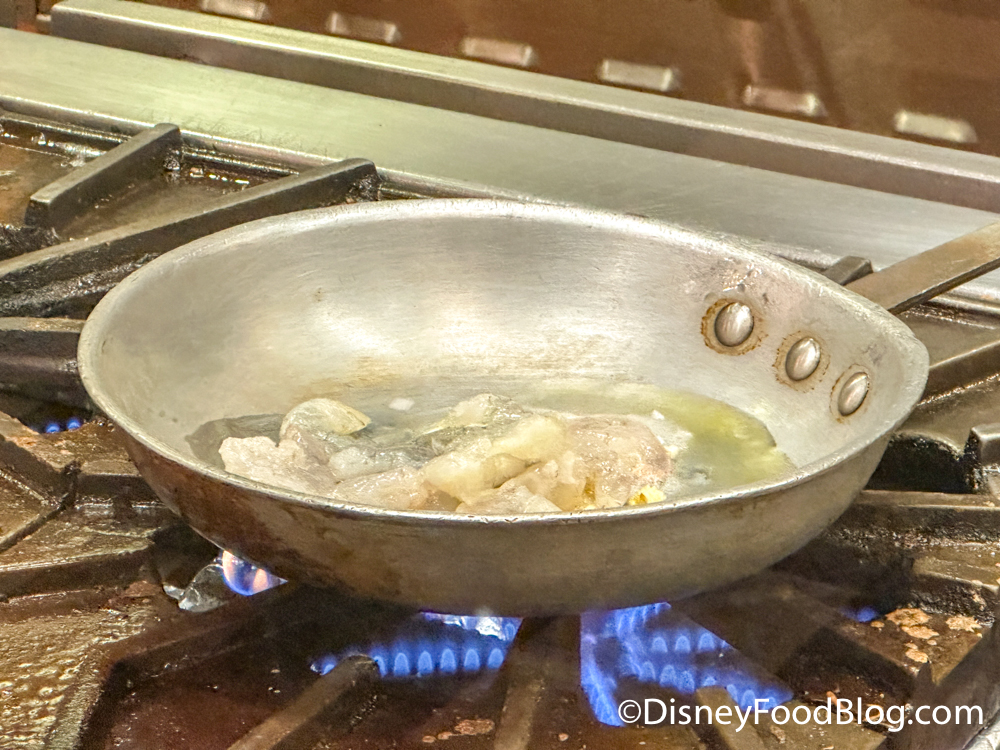 Thankfully, the Shrimp and Grits were a grand slam! After I ordered, I watched as a Cast Member got started on the dish, adding fresh garlic and shrimp right into a pan!