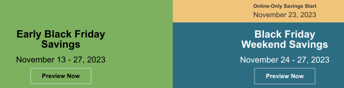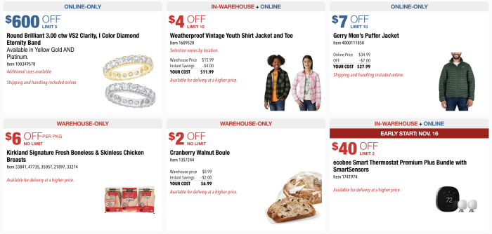 Both deals will be available online and in-warehouse, and the early start for online-only access begins November 21st. After the early start, they should be available November 24th-27th.