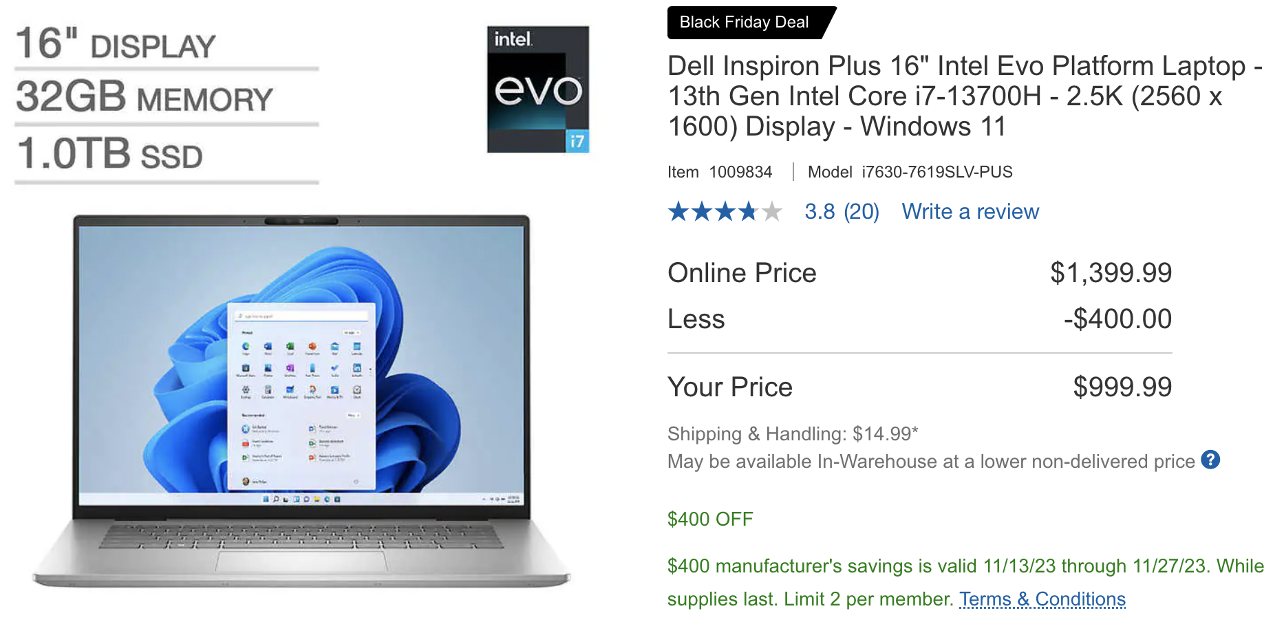 You can also get $400 off a Dell Inspiron 16″ 2.5k Laptop, and deals on a bunch of other laptops as well. It all just depends on what you’re interested in.