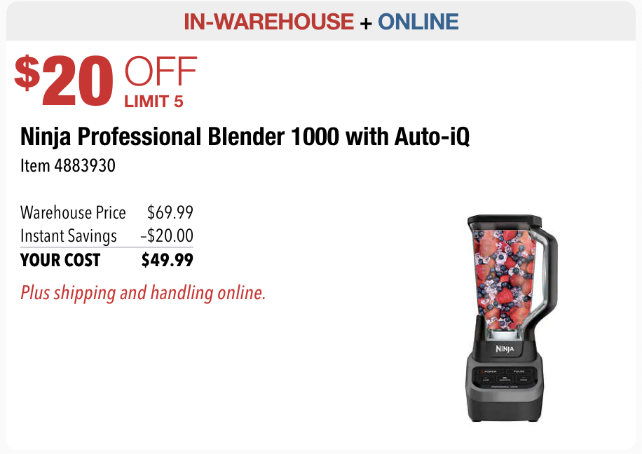 Mark your calendars for November 24th. That’s when you’ll get an early start online on a blender deal. With this discount, you’ll be able to score the Ninja Professional Blender 1000 with Auto-iQ for $20 off, bringing the price down to $49.99.