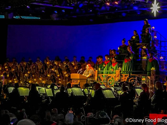 If you’ve never seen the Candlelight Processional, you’re in for a treat. This is a much-loved EPCOT tradition that brings in a live choir with a celebrity narrator to tell the story of Christmas.