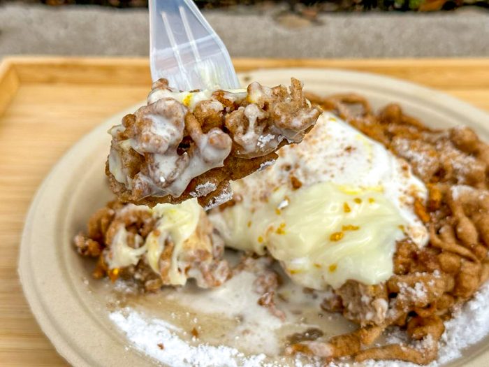 We would not eat this funnel cake again because it’s just way too much. We’d rather just have a regular funnel cake with ice cream, which you can also get here for $13.50. The Festival of the Holiday offering at the Funnel Cake Stand just isn’t for us.