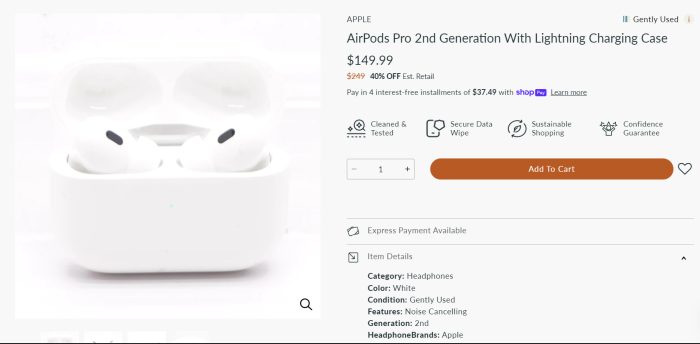 The most popular part of the store, though, might be the electronics department. You can find everything from mobile phones to laptops to headphones and more! Don’t worry, though; all electronics are wiped clean of any personal data and checked to make sure they’re functional. We spotted Apple AirPods Pro at a HUGE discount.