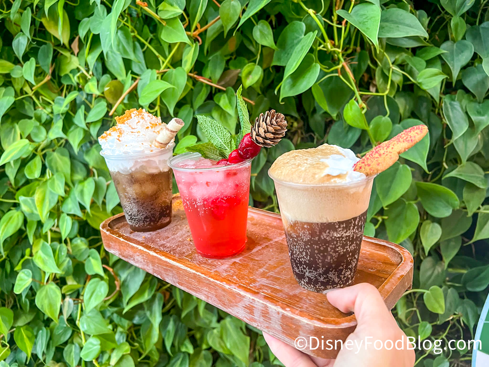 Over at the Coca-Cola Rooftop Bar in Disney Springs, you can grab the Holiday Flavors Flight for $14. This flight includes three different drinks that all have different holiday flavors: Coca-Cola Cinnamon, Sprite Cranberry, and a Gingerbread Coca-Cola Float.