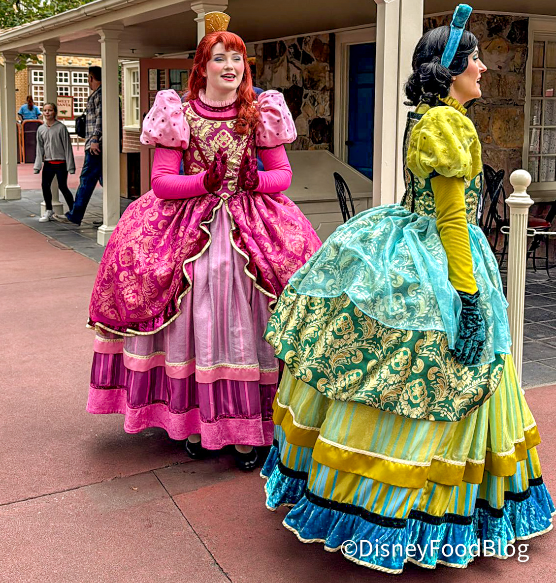 Yes, in the winter, you’ll see characters and Cast Members with slightly different looks! We saw the Step Sisters walking around Magic Kingdom in their warm and cozy long sleeves.