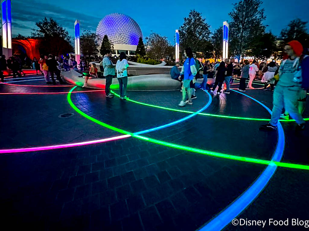 EPCOT’s transformation really begins at the park’s entrance. Disney is known for getting all of your senses involved in your experience and the changes to EPCOT have even included new music as you walk into the park. You can also see that the Leave A Legacy monoliths have moved and been given a colorful upgrade.