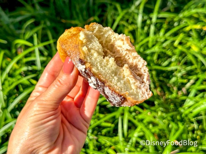 Right away, we thought they were delicious. The base of these beignets is the same as you’d find with a classic Mickey beignet, however, they have a unique, chocolatey twist because of the hot cocoa powder. On a typical Mickey beignet, you’ll find a dusting of sweet powdered sugar, and it really sweetens up the beignet, but the hot cocoa powder doesn’t do that quite as much. If you like a more subtly-sweet treat, this could be a good thing.