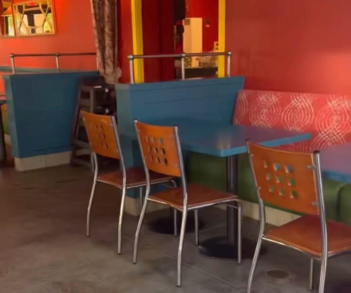 We also noticed some typical quick-service tables and chairs around the dining room, with a couple of half-booths to choose from.