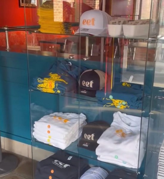 We also spotted an area with merchandise! It looks like various shirts, hats, stickers, cookbooks, and more will be for sale once this spot opens, so you can grab some souvenirs on your visit.