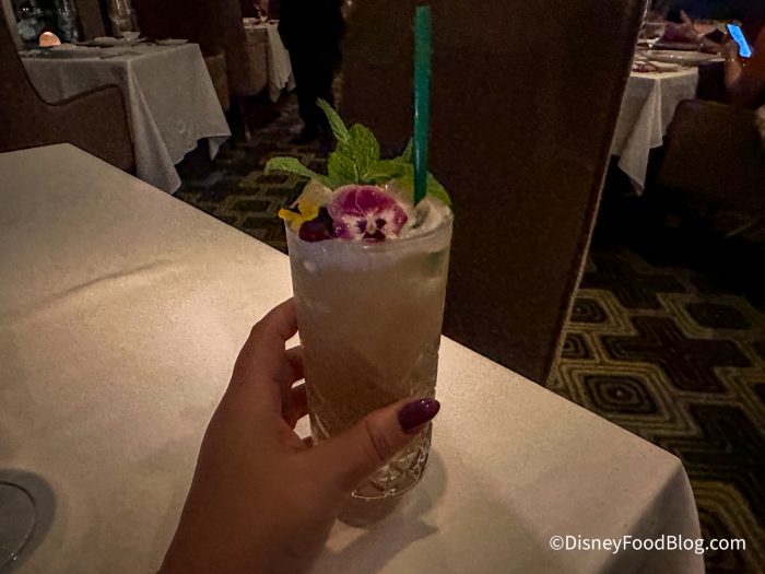 First, we were able to try a mocktail. They do not have a name for it, but the servers told us they enjoy creating different mocktails for guests with different flavors. Ours had lime and pomegranate juices and was topped with beautiful edible flowers.