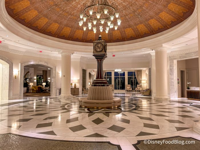 When entering the hotel, you can feel the elegance of the space. With gorgeous floors and a beautiful chandelier, you’ll forget you are in Disney World.