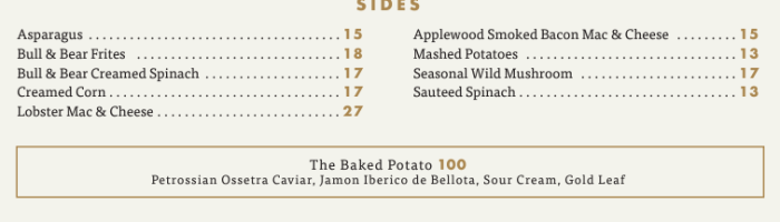 For sides, there are Asparagus, Frites, Lobster Mac & Cheese, and more.