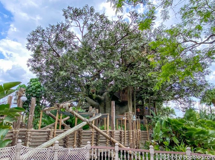 While the treehouse in Disneyland has changed themes several times, the Disney World treehouse remains the Swiss Family Treehouse. This treehouse was built by the Swiss Family Robinson after a shipwreck landed them on a deserted island. And it seems they, too, celebrate the holidays.