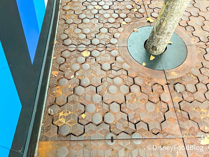 We’re always excited when we see things being completed in EPCOT. Each one means we’re getting closer and closer to the end. So when we noticed this new path aesthetic we were floored (pun intended)! We saw what appears to be a metal grate-style ground on the walking path where the construction walls were recently pushed back.