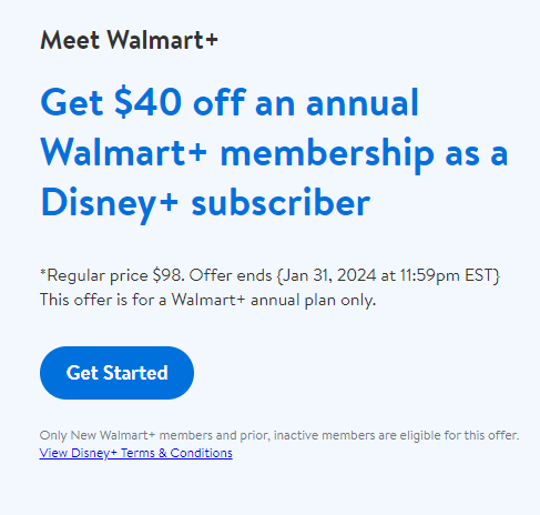 This deal may honestly be the gift that keeps on giving. As a Disney+ subscriber, you are now eligible to get $40 off of an annual Walmart+ membership! That means it will only cost $58 for an ENTIRE YEAR of Walmart+, and we think that it is a pretty great deal. Not only is the price amazing, but this membership also comes with a TON of perks itself.
