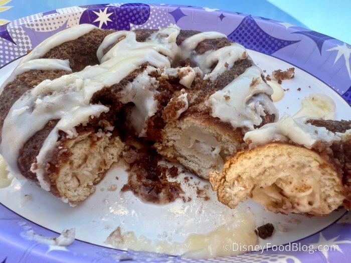 Can I add to your plea above: Disney, PLEASE can we have something THIS GOOD in the MK??? I know the food is generally better in the parks in Cali, but my SOUL would be happy (SOOOOO HAPPY) with this Cinnamon Roll Pretzel.