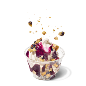 You can also get food at CosMc’s, including some standard McDonald’s items (but NOT french fries), as well as Pretzel Bites and Hash Brown Bites. But we’re intrigued by the Blueberry Lemon Cookie Sundae, made with Vanilla Soft-Serve, Mixed Berry Sauce, and a Lemon-Blueberry Cookie. These are two flavors that go together but are certainly different from McDonald’s typical sundaes (some of which are also available).