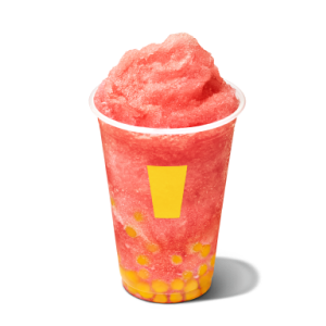 You can also get a Popping Pear Slush, which is a prickly pear-flavored slush finished with whipped cream and topped with popping candy. Popping candy…okay, that’s certainly different. The idea of the pear flavor does sound good, though. We also love the pink color of it — it’s giving us Barbie vibes.