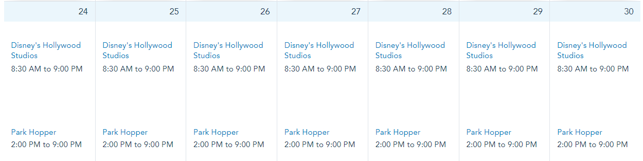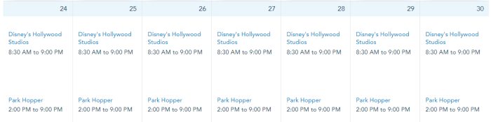 Disney’s Hollywood Studios is open from 8:30AM-9PM (previously 9AM-9PM) from December 24th through 30th. Early Entry will take place from 8-8:30AM. On December 31st, Disney’s Hollywood Studios will be open 9AM-12AM.