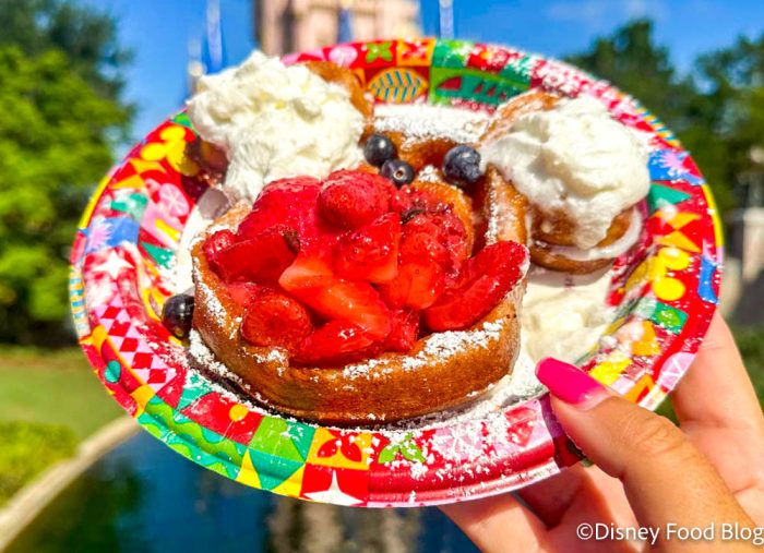 Sleepy Hollow is a small spot over in Liberty Square. While seating is outdoors, this place also has a pretty spectacular Cinderella Castle view! It offers a variety of sweet treats and savory snacks (some large enough for a meal!) served throughout the day. They’re famous for huge and delicious WAFFLES!
