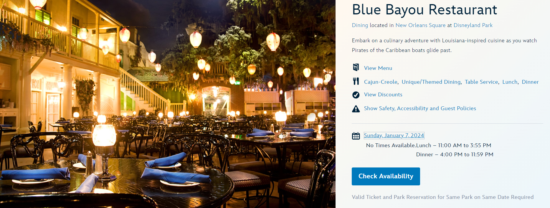 Blue Bayou is closing its doors on January 7th — you’ll notice that if you check the dates on Disneyland’s website, it says “no times available.”