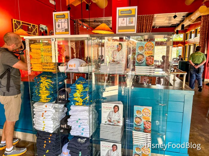 Once you head inside, there’s a wall of merchandise for the restaurant. You can peruse this while you wait to order your food.