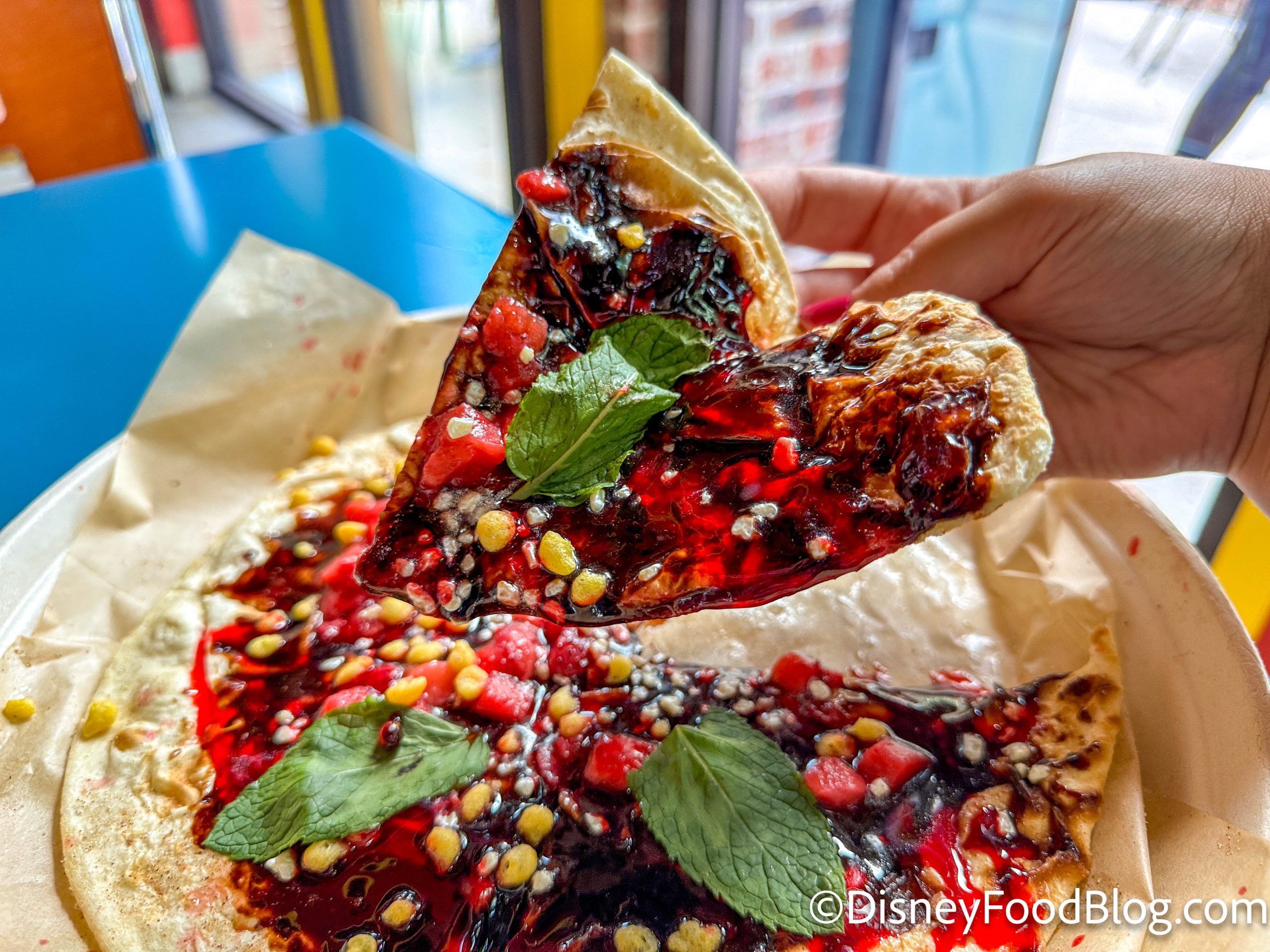 It looks basically like a dessert pizza when it comes out. Of all the items I tried that day, this was my least favorite. It’s essentially topped with a boatload of syrup, which makes it really messy to eat and doesn’t give the most sophisticated flavors possible. I really enjoyed the fresh strawberries and the mint added a nice brightness, but I think this would be better executed if it were topped with a chocolate spread and strawberry jam instead of sauces.