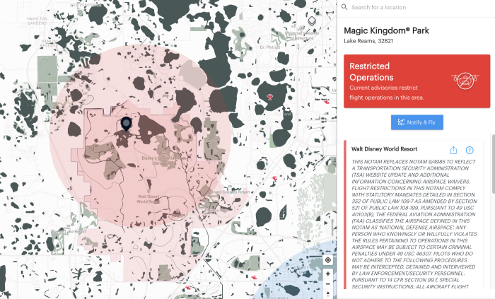 If Disney has created drone shows at its other parks, why doesn’t Disney World already have a drone show? Currently, Disney World is a no-fly zone. That means that the Federal Aviation Administration enforces a rule that pilots and drones may not fly over the land where Disney World is located. According to TS2, “drone operators are not allowed to fly their devices within a three-mile radius of Disneyworld’s [sic] entrance. This includes all airspace up to an altitude of 400 feet.”