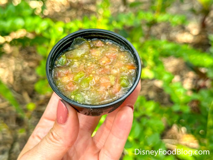 The salsa was tangy and bright and reminded me of a salsa verde. It was a tad spicy but nothing too overwhelming.
