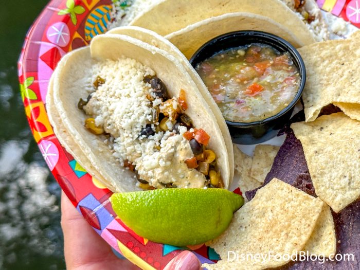 The Street Corn Tacos came with two tacos filled with black beans, roasted corn, poblano peppers, red onion, pico de gallo, lime crema, and cotija cheese. They were also served with chips and salsa.