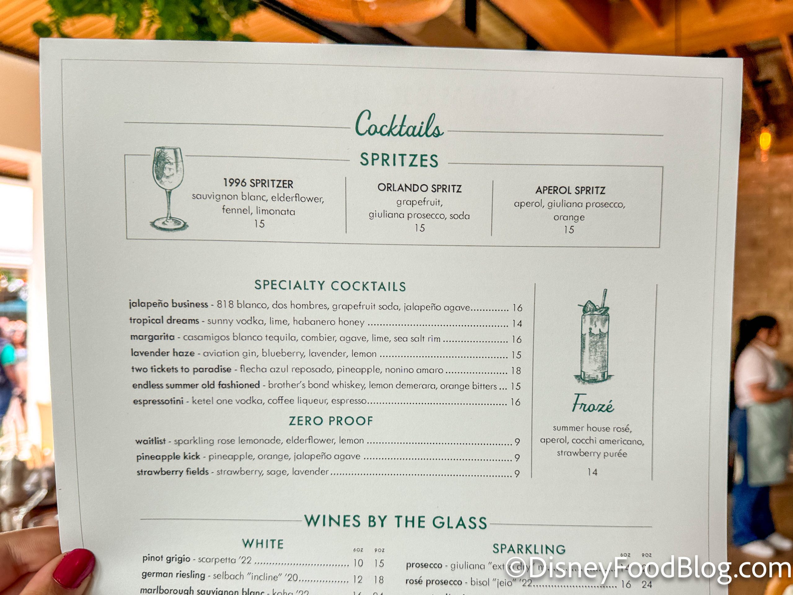 Last but not least, there are plenty of beverages to choose from at Summer House. They’ve got a number of spritzes and specialty cocktails, as well as some zero-proof choices.