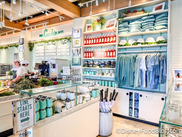 This section of the restaurant is also home to the merchandise display. You can buy Summer House items like sunglasses, shirts, bottles, and more!