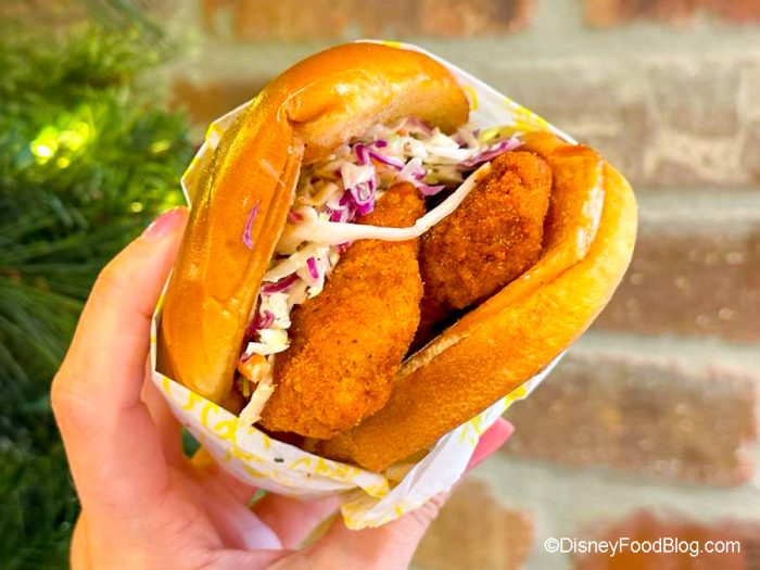 Excuse us because we’re gonna need a minute.🤤 Right off the bat, this was our new favorite sandwich here. It’s sweet and spicy, which is pretty much the perfect combo for us. The crispy chicken is tender on the inside, and you get some nice crunch and brightness from the slaw and pickles. But warning: this is SWEET and SPICY, though for us, it was perfect. Those flavors might be too much for some people, though.