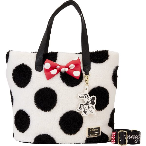 Next up in this collection, is this Sherpa tote bag! We love how fuzzy this bag looks and we can’t wait to get our hands on it. It features a vintage-inspired Minnie Mouse Charm and a leather bow– and we have to say, we’re loving the leather/sherpa combo. It also has a strap so you can turn this bag into a crossbody! Versatility at its finest.