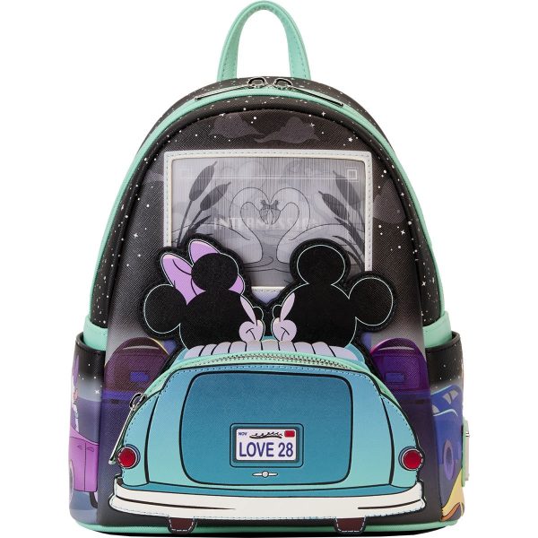 This mini backpack takes us with Mickey and Minnie on their date at the drive-ins. Their license plate even says “Love28”, referring to the year the couple was created! It looks like their movie is on an intermission right now– do you think they’ll get up and go get some snacks? We know we would.