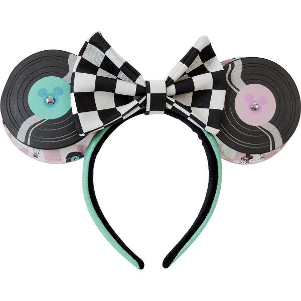This Minnie ear headband is the PERFECT thing to complete this collection. The records match the color scheme of the nylon bag and wristlet. The blue and pink combo complement each other so well and adding the black and white checkered bow into the mix ties it all together. Ahem, we’re pre-ordering ALL of these ASAP.