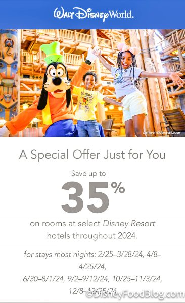 Right now, select visitors who have traveled to Disney World recently are getting “unique offer codes” in their email. One of our coworkers received one for 35% off that’s valid during certain dates in 2024.