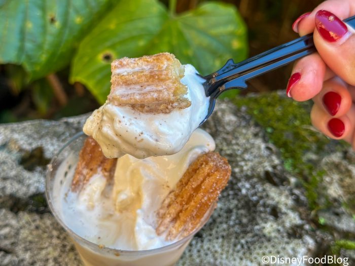 This snack looked just like the picture card at the registers and smelled even better! The soft-serve ice cream was thick and creamy (pretty standard for Disney World ice cream), and when mixed with Mr. Coffee mezcal it tasted like a caramel frappuccino. The taste was distinctly coffee but with a very heavy ratio of cream and sugar and not just a straight coffee taste.