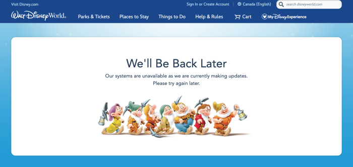 We reported earlier today that the Disney World website was facing some issues and hotel bookings were unavailable. But now, the problem has spread to other areas of the website as well — and we’re here to warn you.