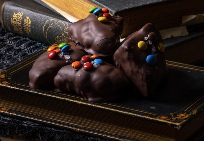 Gideon’s has released a bag of their Frankenstein cookie bites featuring their namesake cookie covered in chocolate and topped with sweet chocolate-filled candies.