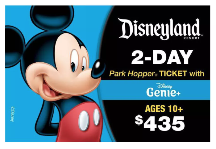 Did you know you can tack on Genie+ to the cost of your park tickets? This option qualifies for Target’s gift card deal, too, and gets you admission to either Disneyland Park or Disney California Adventure Park for two days.