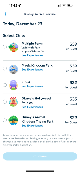 Just a friendly reminder, that Genie+ is the virtual planning assistant on the Disney World app. Once you pay for it, you can make Lightning Lane selections to jump the line! It also gives you other benefits like access to all your ride photos on the days you paid for it. It can be a great tool, especially on busy days like these next few days. Remember, purchase it early in the day if you’re hoping to use it this weekend.