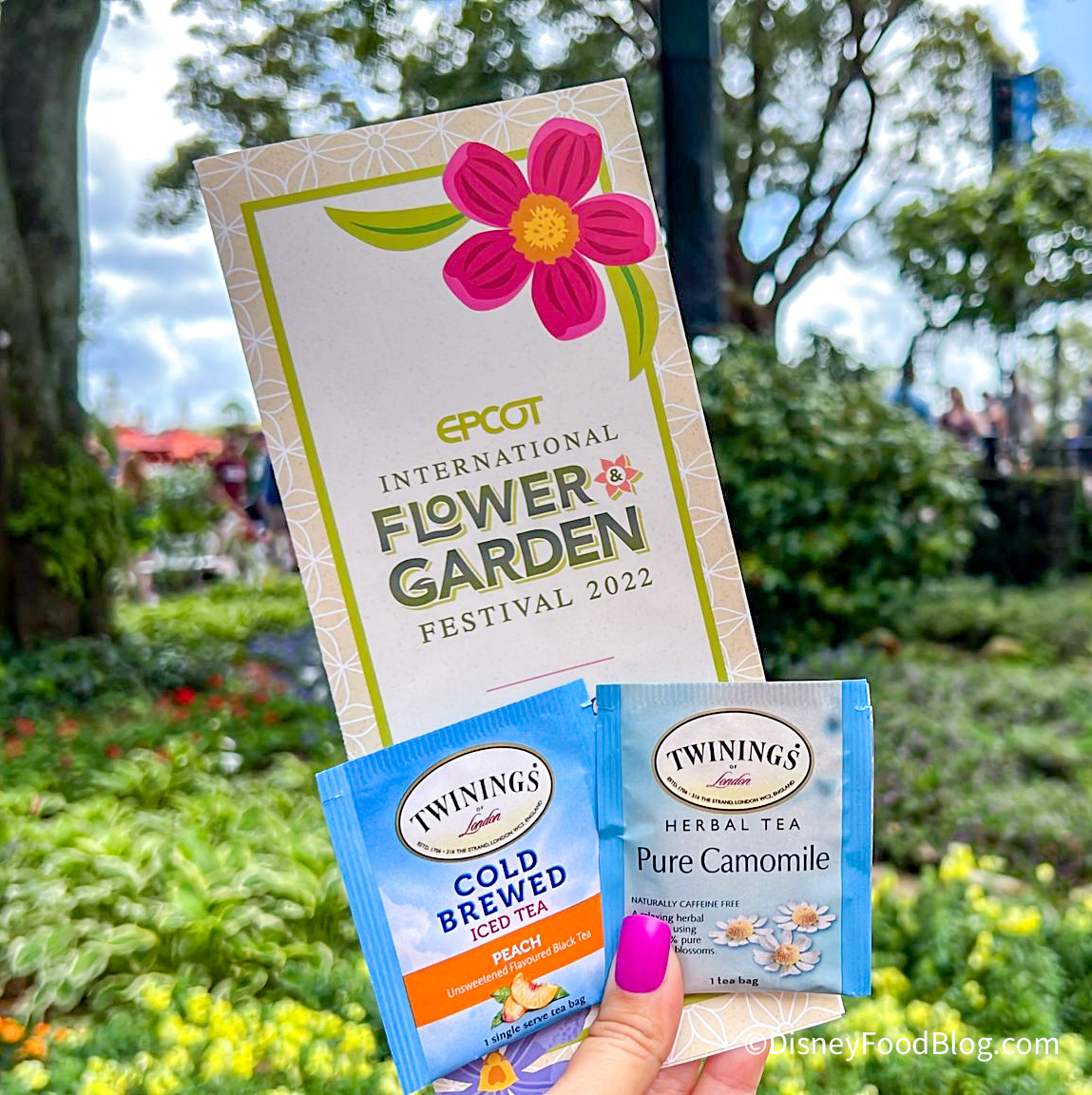 When you’re strolling around The Tea Caddy shop in the UK pavilion, you MIGHT see a table off to the corner holding small plastic cups. On occasion, UK cast members will be handing out samples of some of the Twinings Tea and refreshers they sell in the store. (Which can be tricky-tricky-TRICKY because we ALWAYS wanna buy a few boxes after gulping down the sample.) Also, they offer a tour during the Flower and Garden Festival, where you’ll be led through the English gardens while learning about the history of teas and how to brew and make teas. The tour is free, but you will need to sign up 30 minutes in advance.
