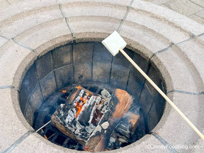 The one downside to the Chip ‘n’ Dale campfire sing-a-long is the fact that you’ve gotta bring your OWN marshmallows and sticks — or pay for a whole s’mores kit for around $6. BUT the other resorts that offer campfires around the property (which is a GREAT deal of ‘em) DO offer free marshmallows to their hotel guests. So roast away!